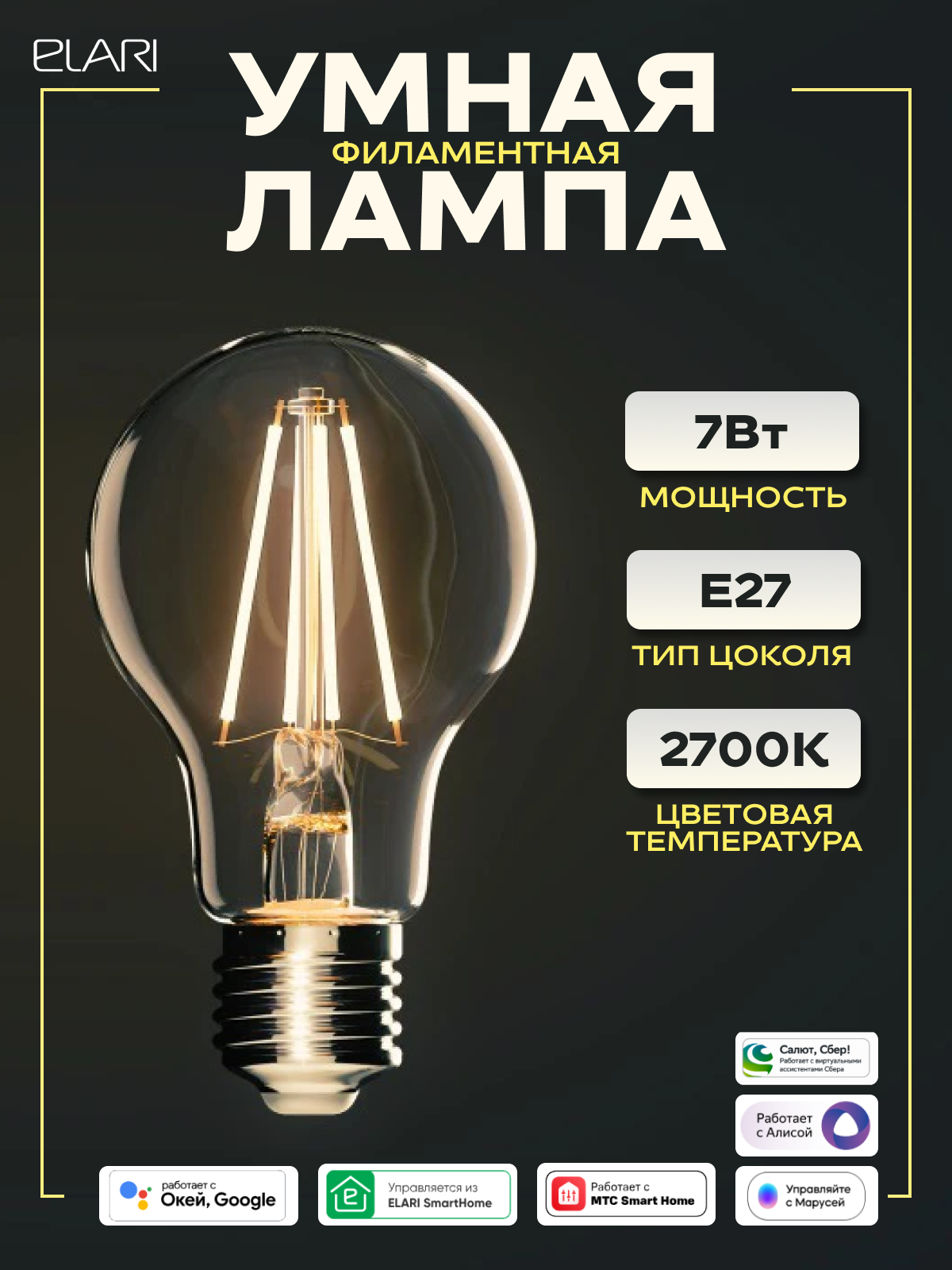 Умная филаментная лампа ELARI smart LED filament, E27 LMS-01