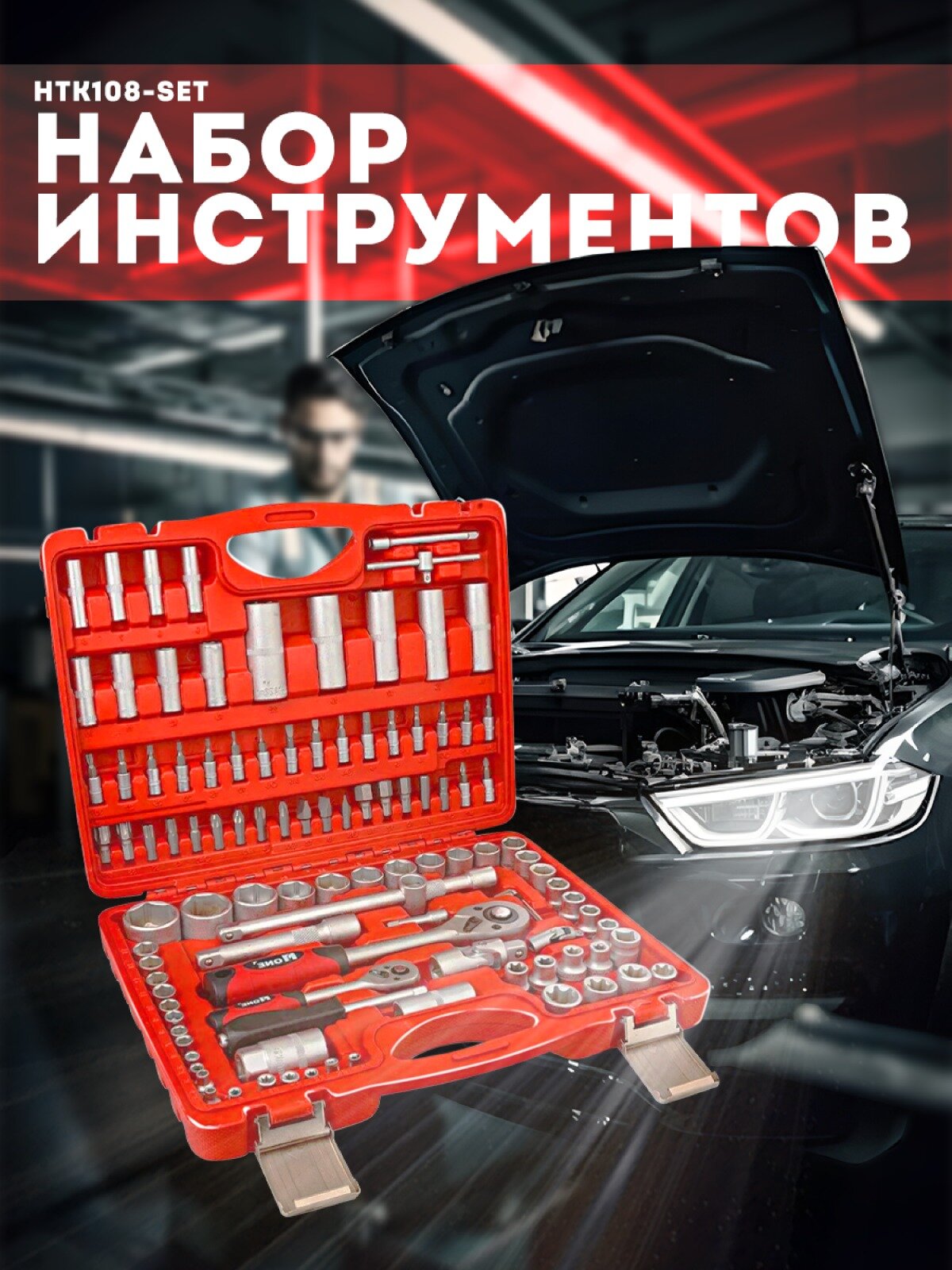 Набор инструментов NUMBER ONE HTK108-SET, 108 предм., красный
