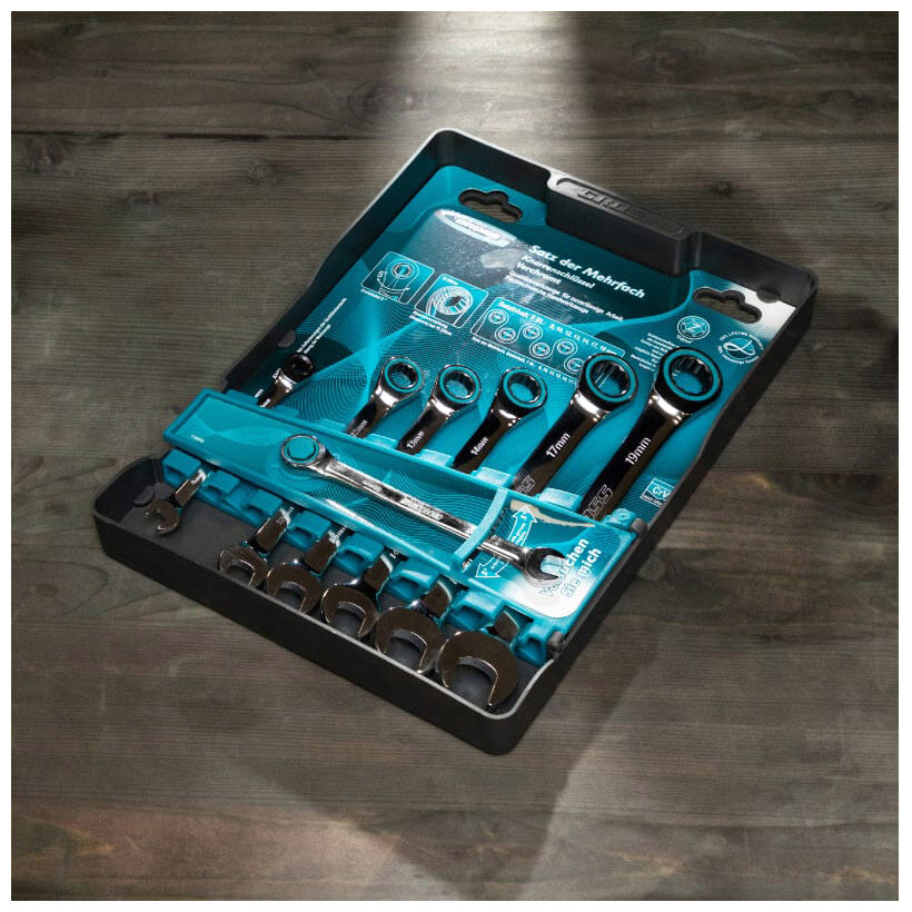 Ключи комбинированные Gross, с трещоткой, реверсивные, 8 - 19 мм, набор 7 шт