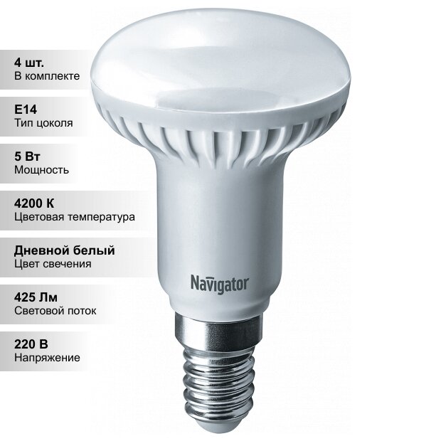 Купить (4 шт.) Светодиодная лампочка Navigator R50 5Вт 230В 4200K E14