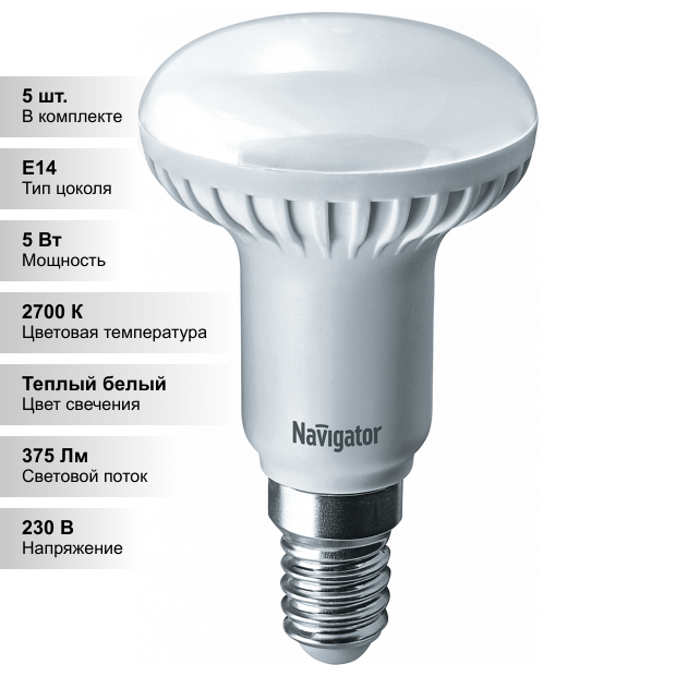 (14 шт.) Светодиодная лампочка Navigator R50 5Вт 230В 4200K E14