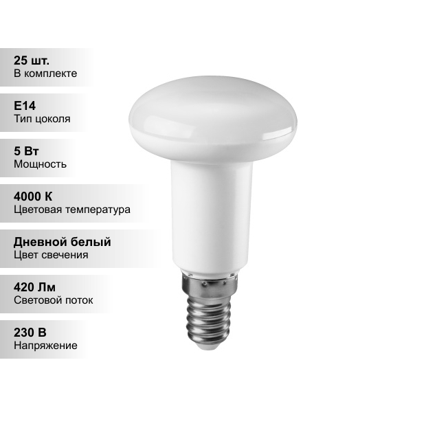 Купить (25 шт.) Светодиодная лампочка онлайт R50 5Вт 230В 4000K E14