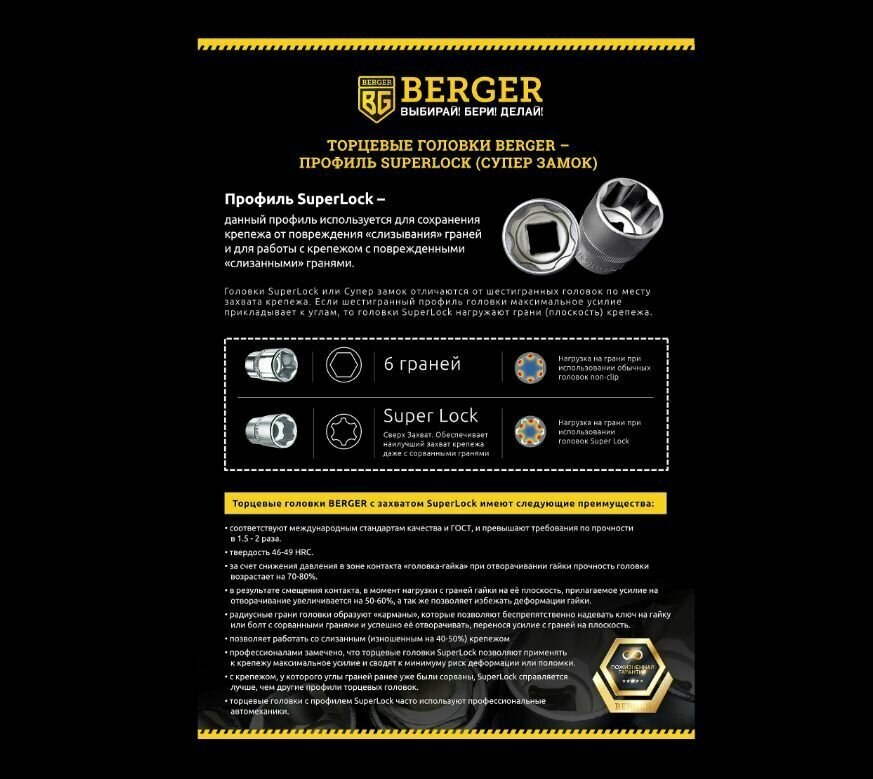 СохранитьНабор головок торцевых 1/2 SuperLock 8 предметов (16-27 мм) BERGER BG2029 интересное: