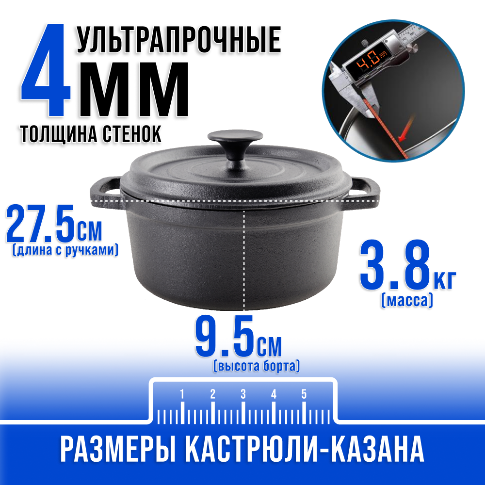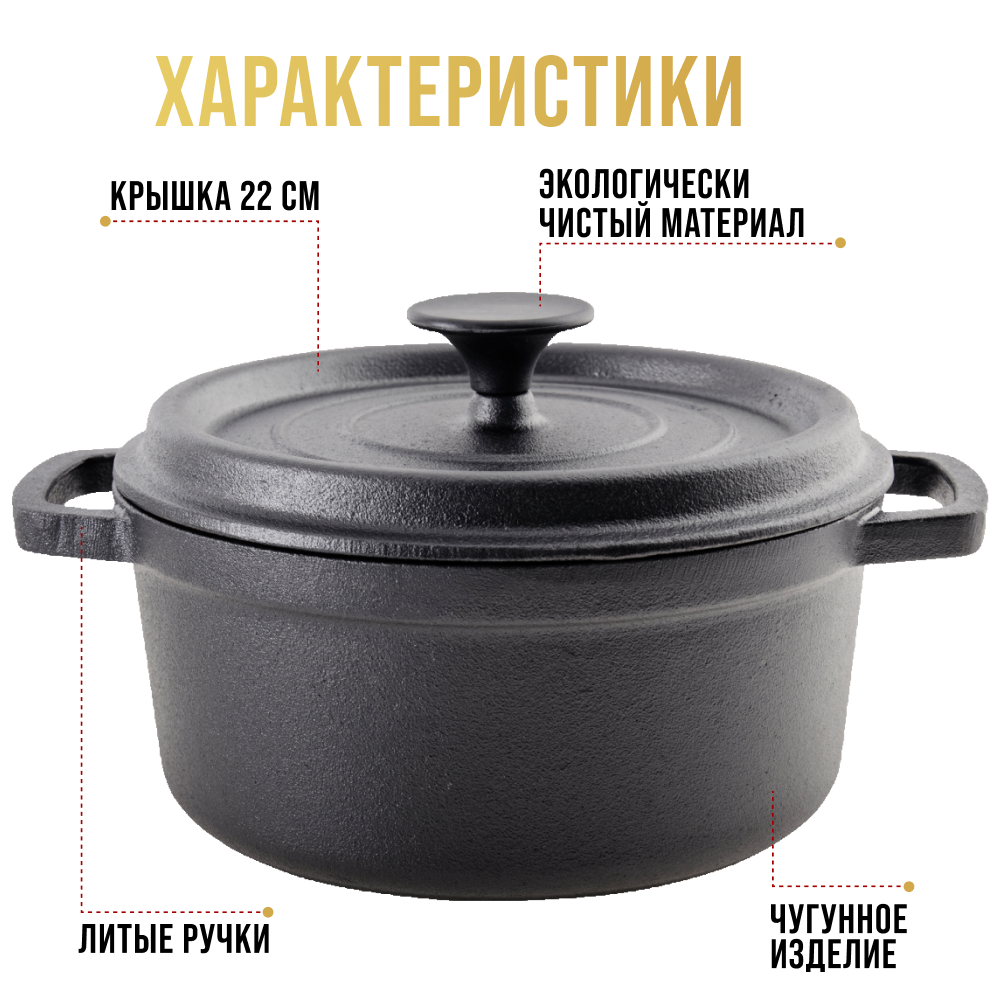 Кастрюля с крышкой чугунная, 2,9 л, чугунок