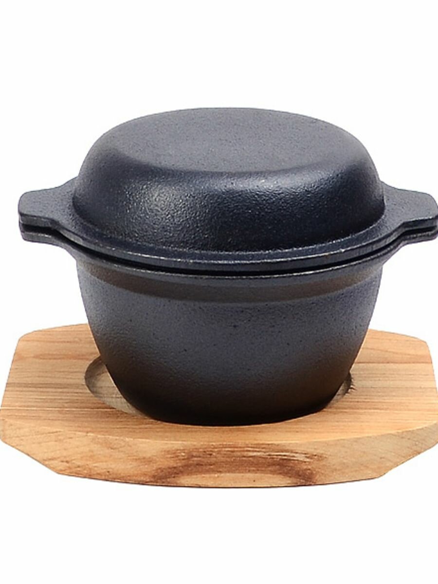 | Дополнительная информация | материал крышки: чугун; материал ручек: чугун; на деревянной подставке размером 14,5х11,5х1,5 см |