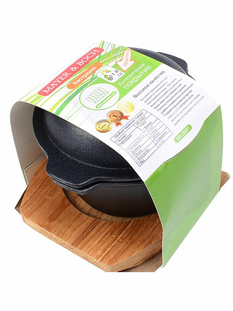 Кастрюля Mayer&boch чугун с крышкой деревянная подставка 300мл (26801)