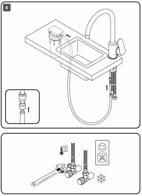| Комплектация | смеситель - 1 шт., комплект крепежа - 1 шт., гибкая подводка - 2 шт., инструкция - 1 шт. |