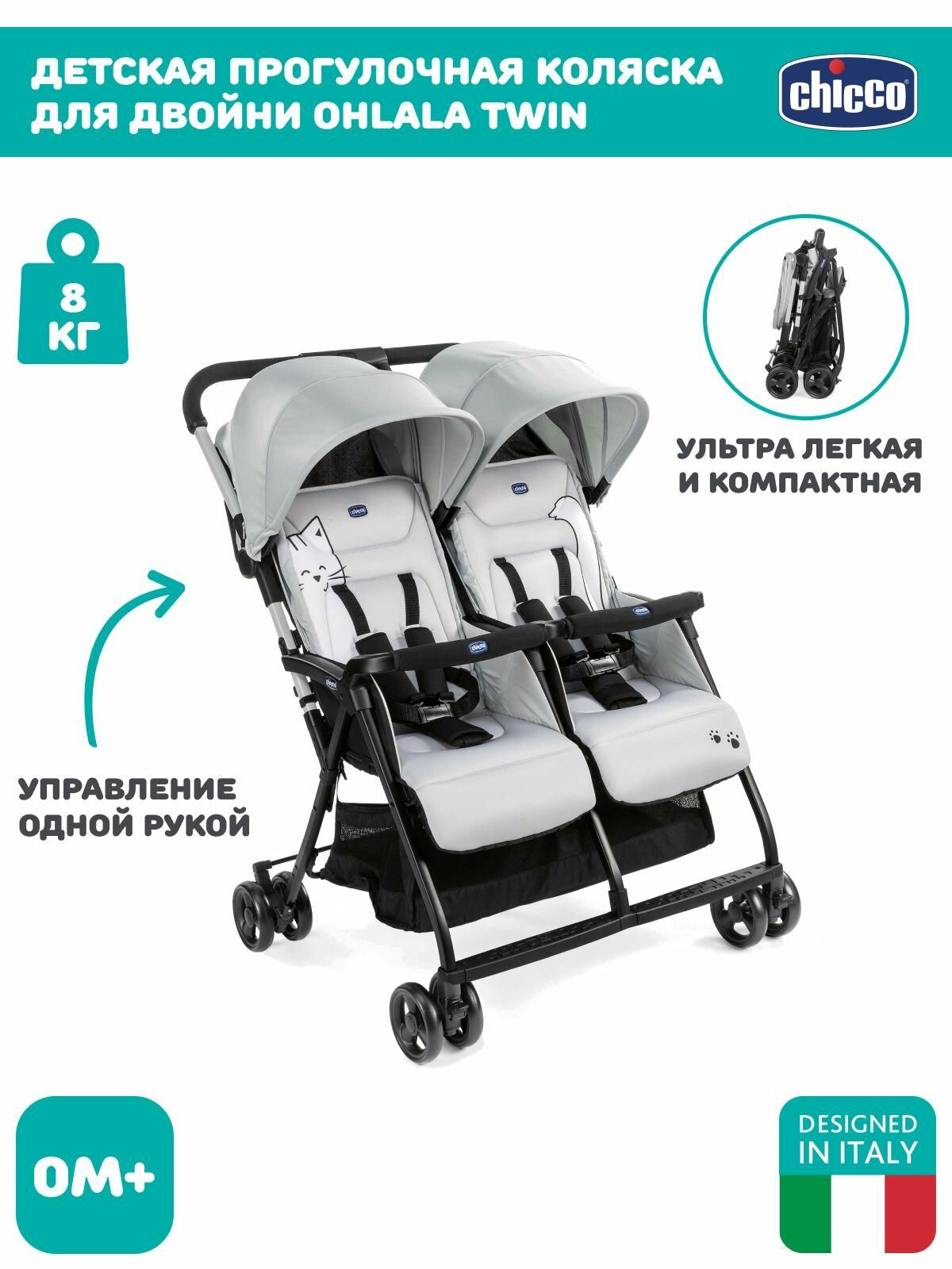 Коляска прогулочная для двойни CHICCO Ohlala Twin Silver Cat