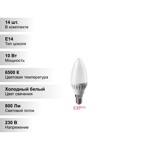 (14 шт.) Светодиодная лампочка онлайт PROMO C37 10Вт 230В 6500К E14