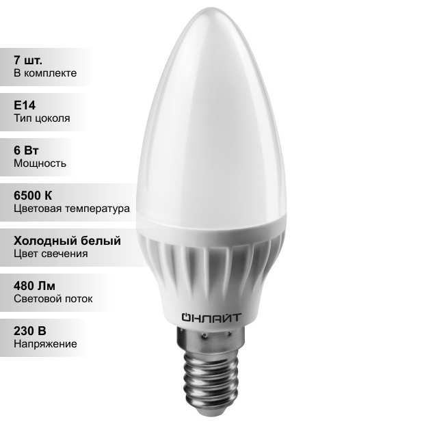 Купить (7 шт.) Светодиодная лампочка онлайт C37 6Вт 230В 6500K E14