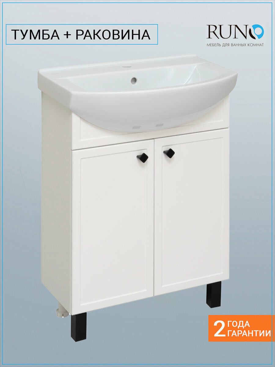 Тумба с раковиной / Runo / Римини 75 / белый / с умывальником Best 75