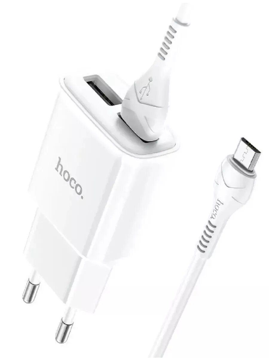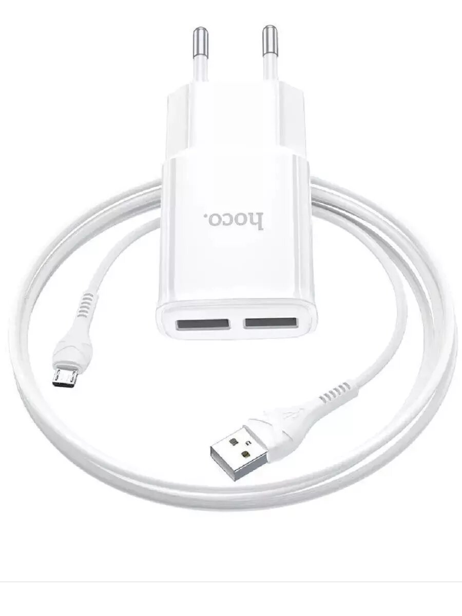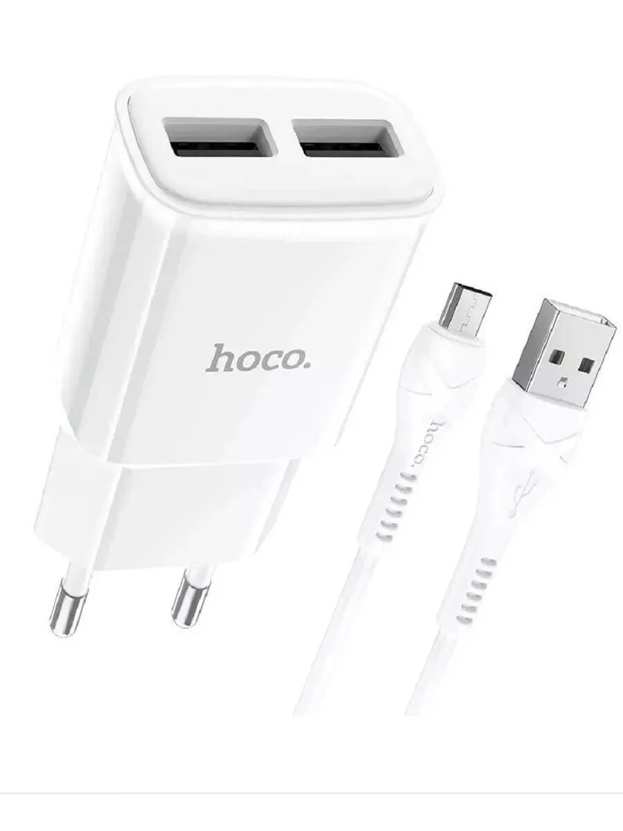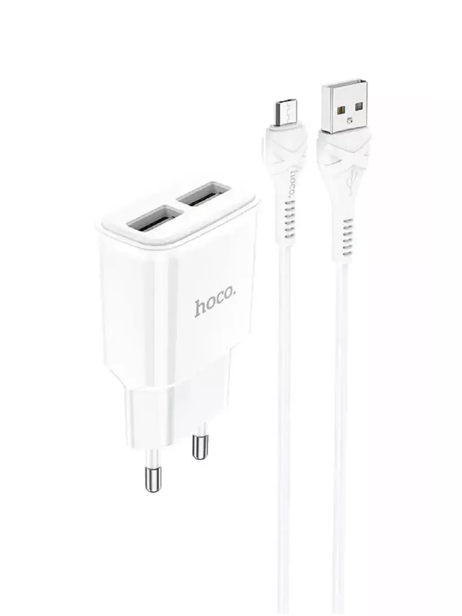 Купить Сетевое зарядное устройство Hoco C88A, 2 USB, 2.4 А, кабель Micro USB - USB, 1 м, белый