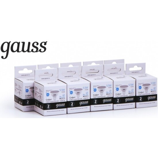Лампочка светодиодная MR16 GU5.3 5.5W нейтральный белый свет 4100К упаковка 10 шт. Gauss Elementary