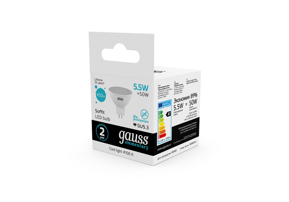 Купить (10 шт)Лампа Gauss Elementary MR16 5.5W 450lm 4100К GU5.3 LED 1/10/100