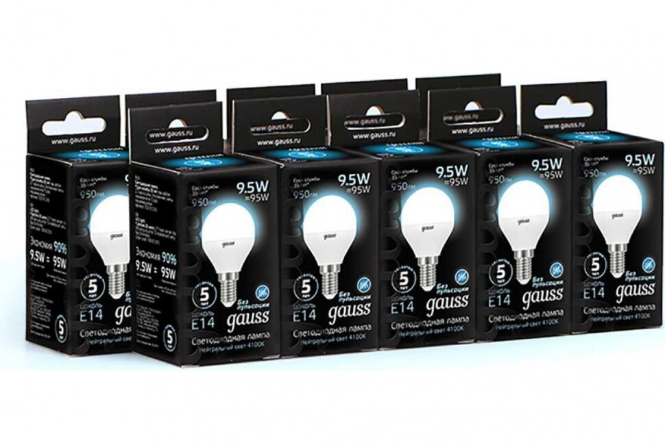 (6 шт.) Светодиодная лампочка Gauss Globe G45 9.5Вт 150-265В 4100K E14