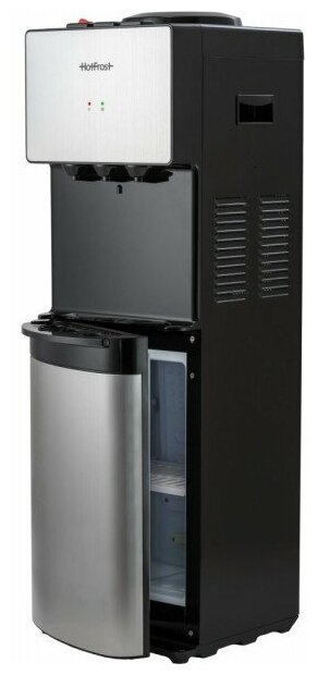 Кулер для воды напольный HotFrost V400BS, нагрев/охлаждение компрессор, с холод. шкафом, черн/серебр