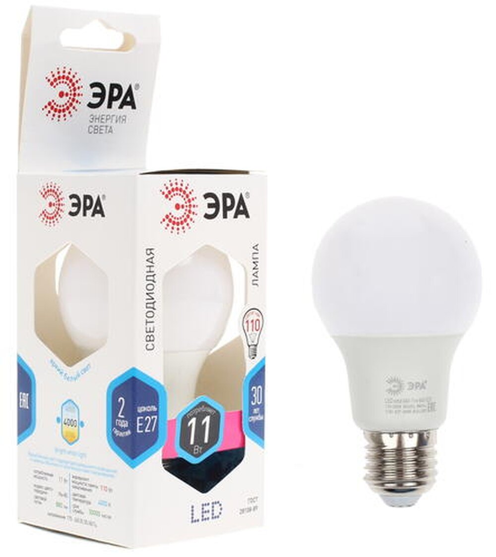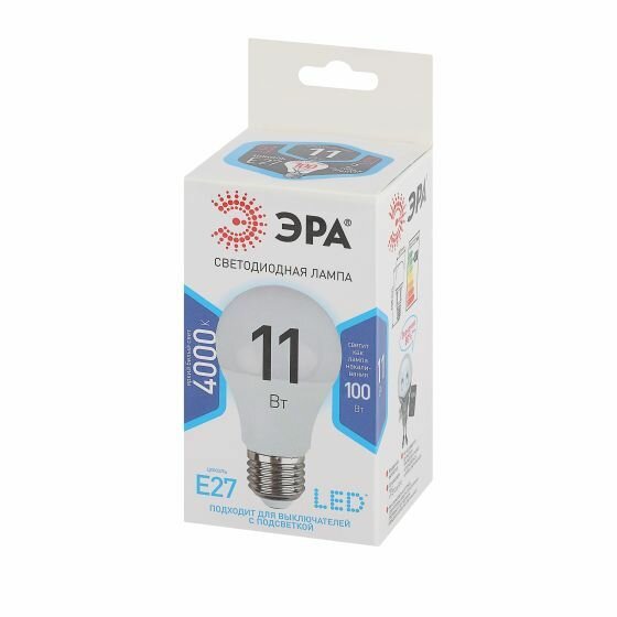 Ниже Вы можете прочитать отзывы на Лампа светодиодная ЭРА, 11 (100) Вт, цоколь E27, груша, нейтральный белый свет, 30000 ч., LED smdA60-11w-840-E27, ознакомится с подробными характеристиками, посмотреть интересные обзоры и фотографии на Лампа светодиодная ЭРА, 11 (100) Вт, цоколь E27, груша, нейтральный белый свет, 30000 ч., LED smdA60-11w-840-E27.