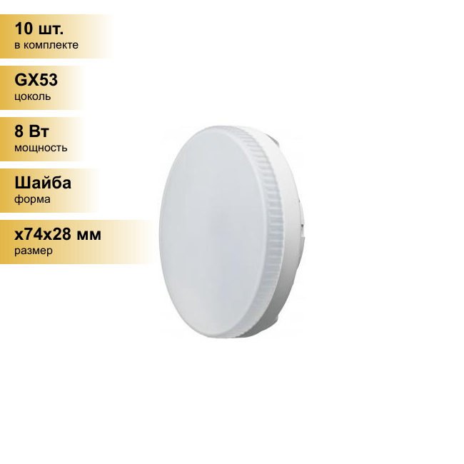 (10 шт.) Светодиодная лампочка онлайт GX53 св/д 8W(600lm) 2700K 2K 28x74 матовая OLL-GX53-8-230-2.7K 71636 Теплый белый. Цоколь GX53