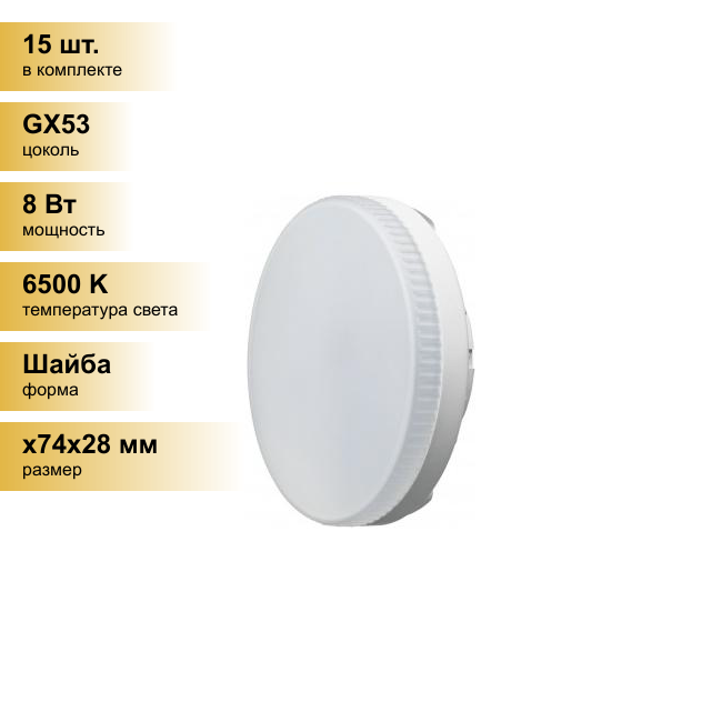 Купить (15 шт.) Светодиодная лампочка онлайт GX53 св/д 8W(640lm) 6500K 6K 28x74 матовая OLL-GX53-8-230-6.5K 61132 . Цоколь GX53