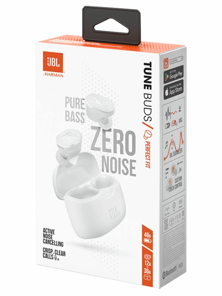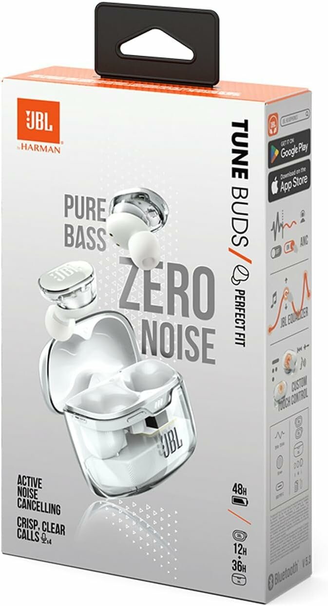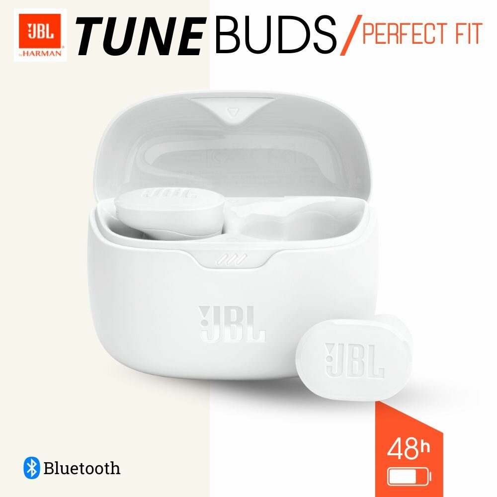 Купить Гарнитура внутриканальные JBL Tune Buds Ghost белый беспроводные bluetooth в ушной раковине (JBLTBUDSGWHT)