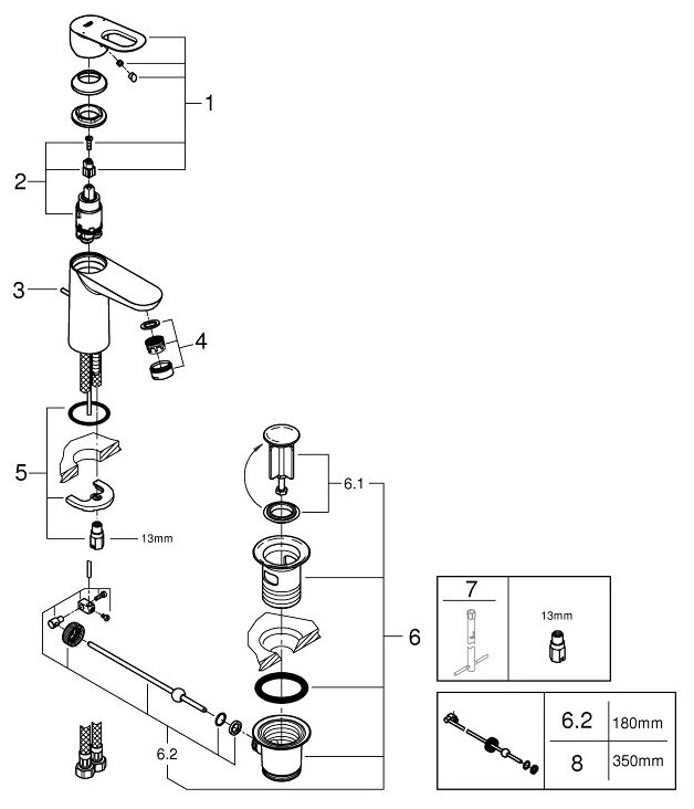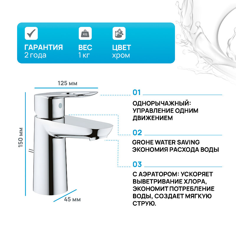 Grohe 23335000 BauLoop Смеситель для раковины, сливной гарнитур, хром