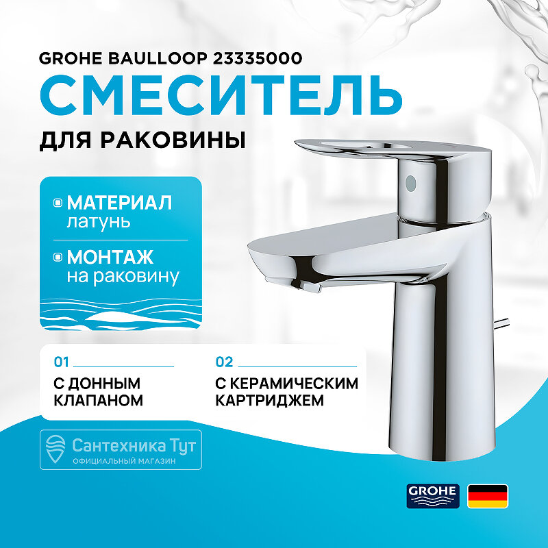 Смеситель для раковины GROHE BauLoop 23335000 с донным клапаном, хром