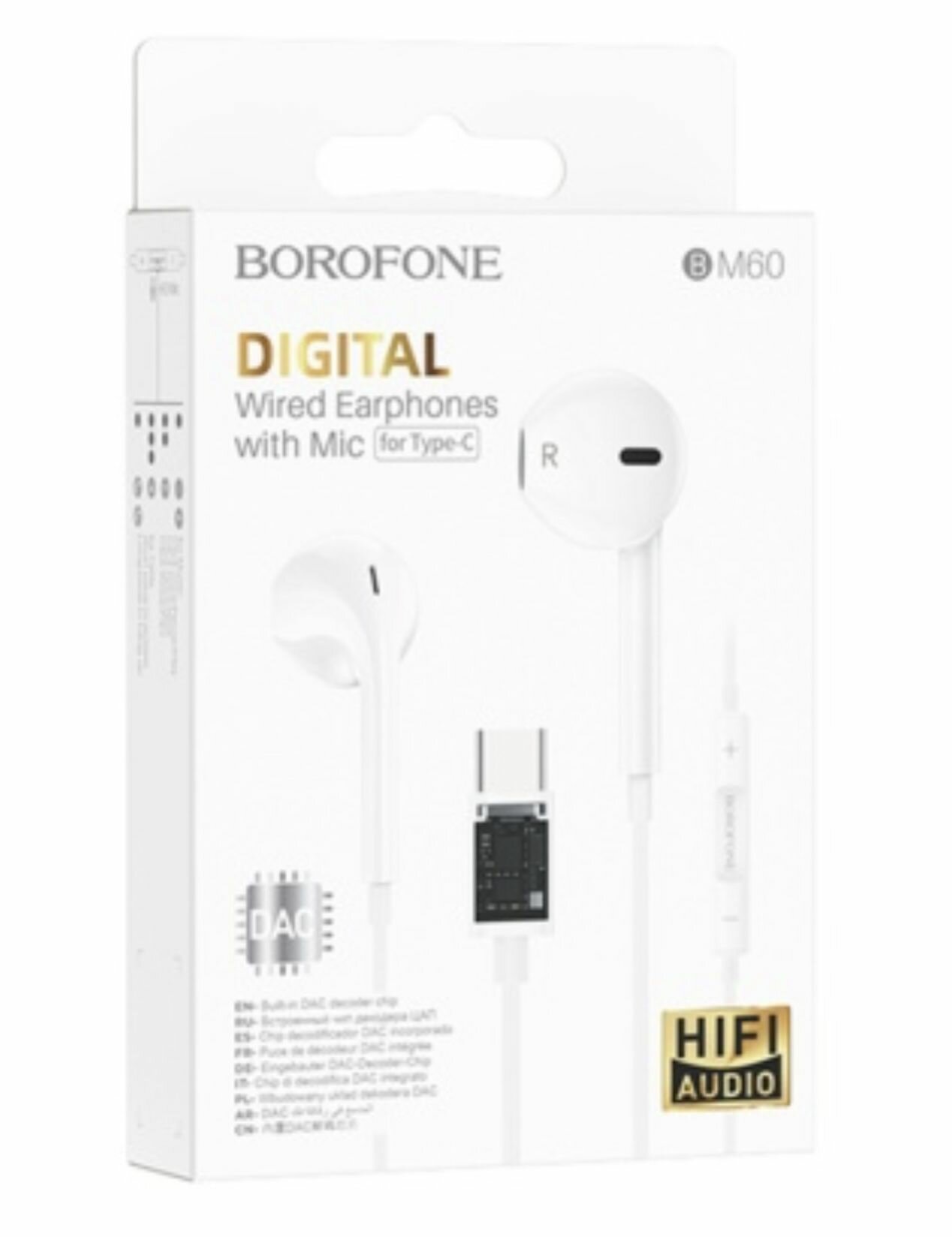 Проводные наушники BOROFONE BM60 Type-C Original, Type-C, 1.2 м, белый