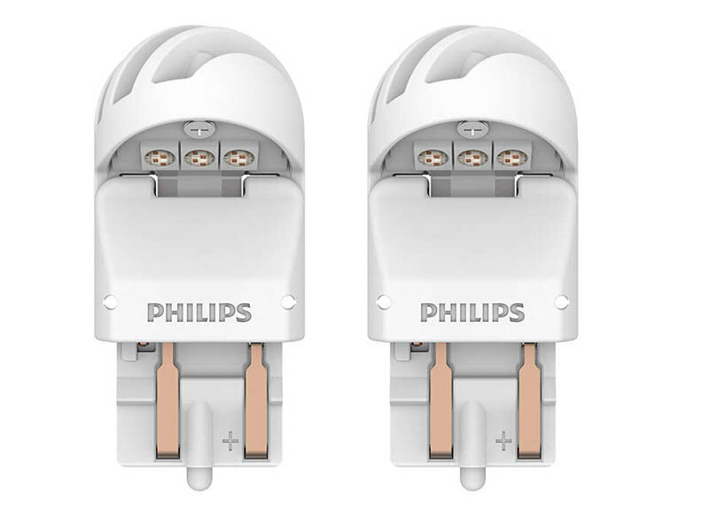 Лампа светодиодная Philips X-tremeUltinon LED W21/5W (W3x16q, T20), 12/24В, 2.2/0.3Вт (соответствует 21/5Вт), красная, комплект 2 шт