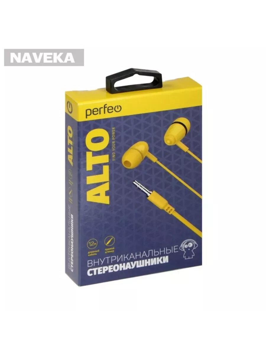 Наушники внутриканальные Perfeo ALTO желтые (коробка) (PF_C3186_B)