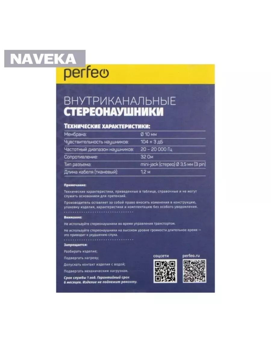 | Отзыв: | Покупал для прослушивания аудиокниг. Это уже вторые мои наушники марки Perfeo. Очень доволен. Вполне качественный звук. Низов, конечно маловато, но, для интереса тестировал как они работают с музыкой. Если прижать наушники пальцами в ухо, то получается на удивление хороший и качественный звук. Но так ходить то не будешь... Пробовал покупать альтернативных производителей по этой цене - там был отвратительный звук и проживали они 2-3 недели и рвались... |