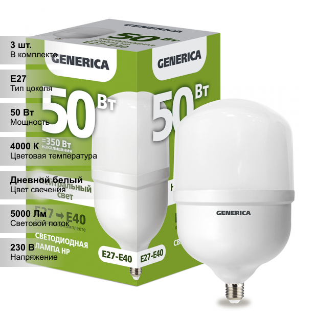 Купить (3 шт.) Лампа LED HP 50Вт 230В 4000К E27-E40 GENERICA