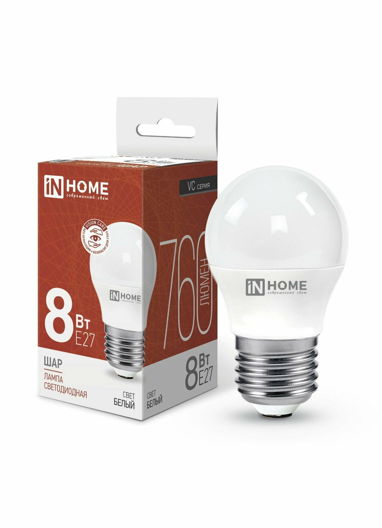 Лампа светодиодная IN HOME LED-ШАР-VC, Е27, 8 Вт, 230 В, 4000 К, 720 Лм