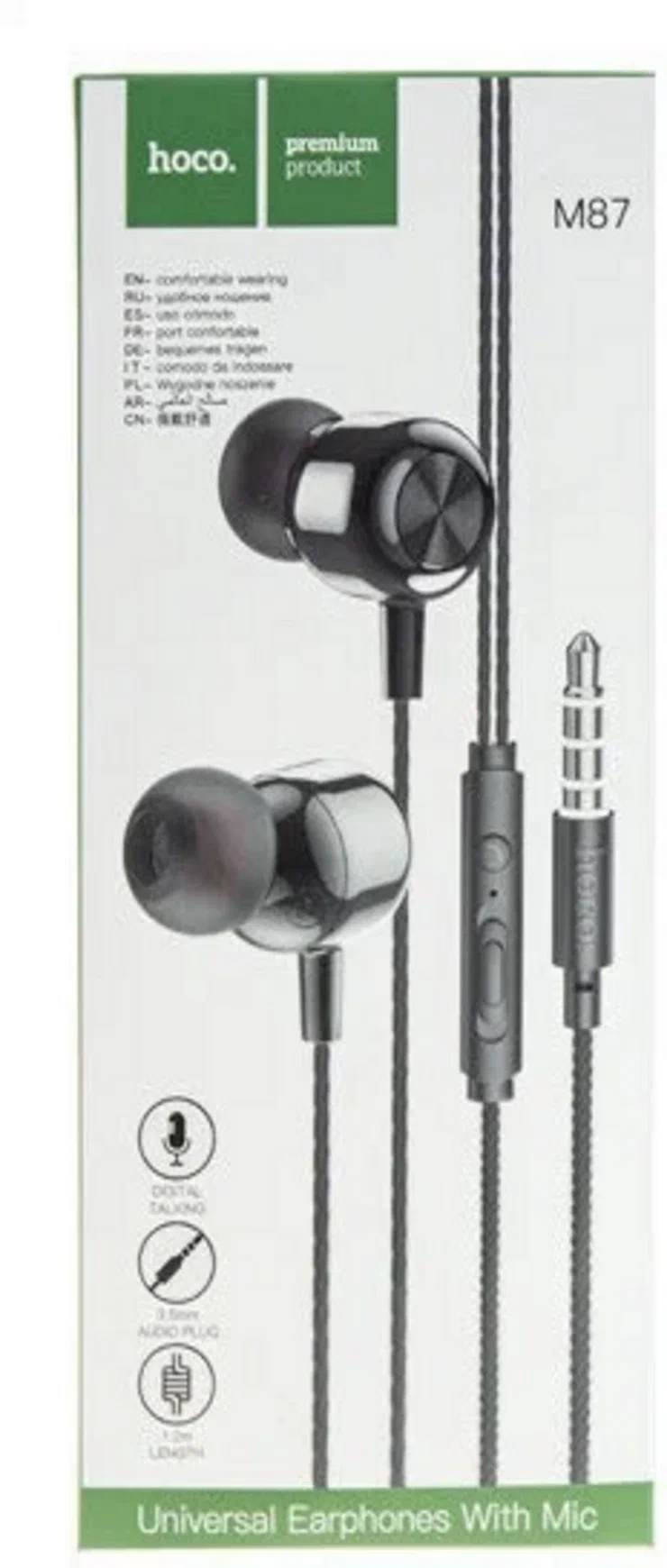 Наушники вакуумные для AUX разъема с микрофоном и регулятором громкости длина 1.2м Hoco M87 Gloomy Black