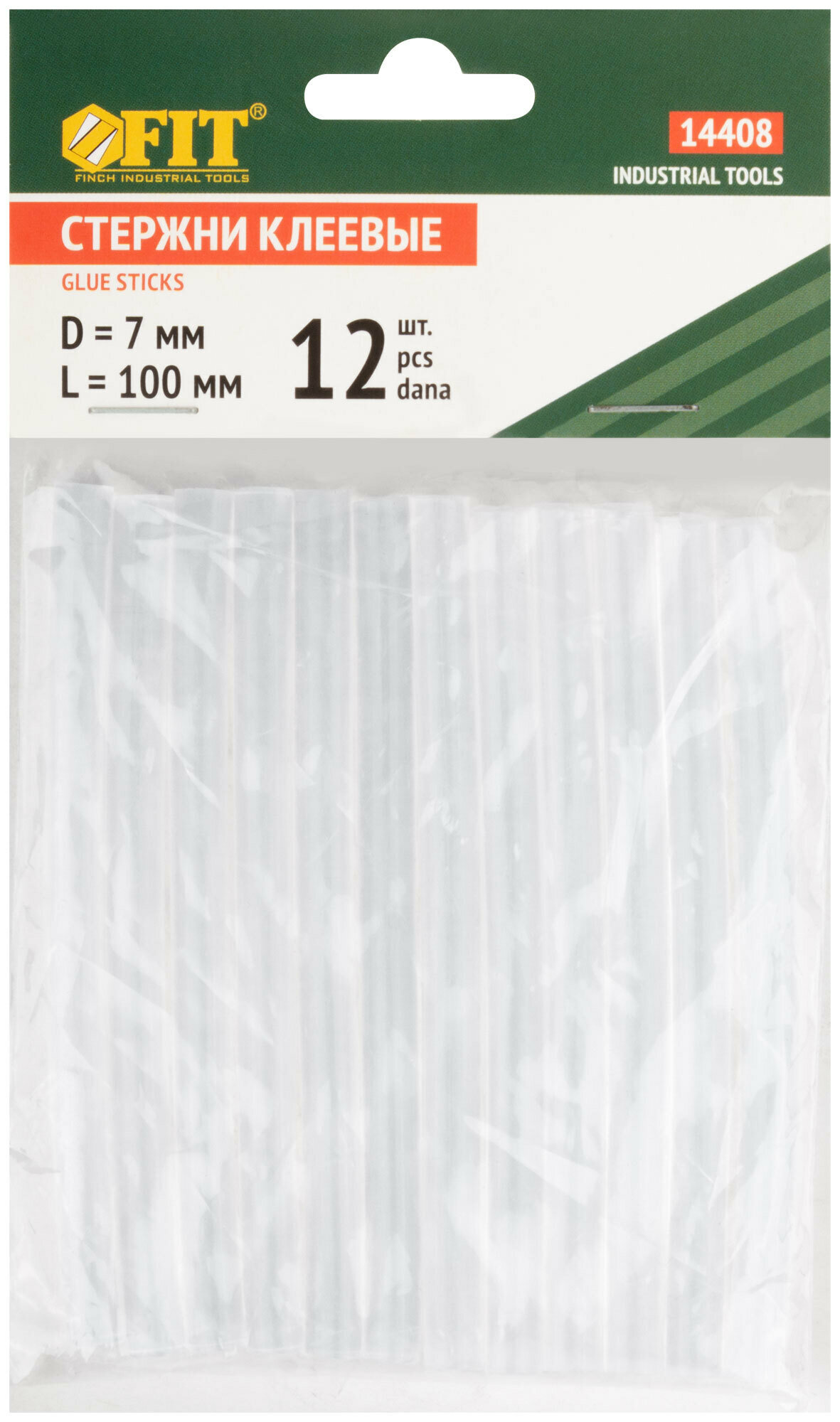 Стержни клеевые бесцветные д.7 мм x 100 мм, 12 шт. FIT 14408