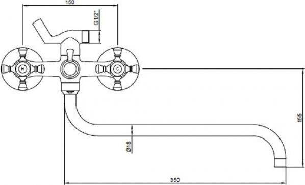 Смеситель для ванны двухвентильный KAISER 11070К, цвет хром