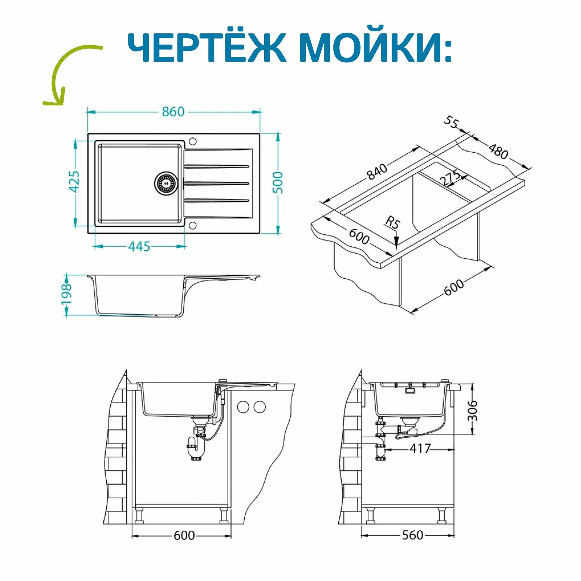 | Форма мойки | прямоугольная |