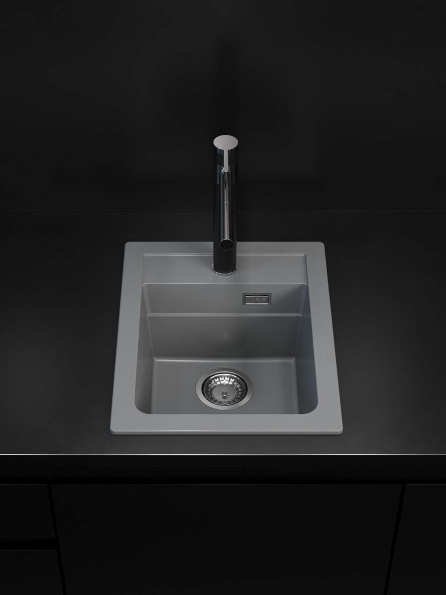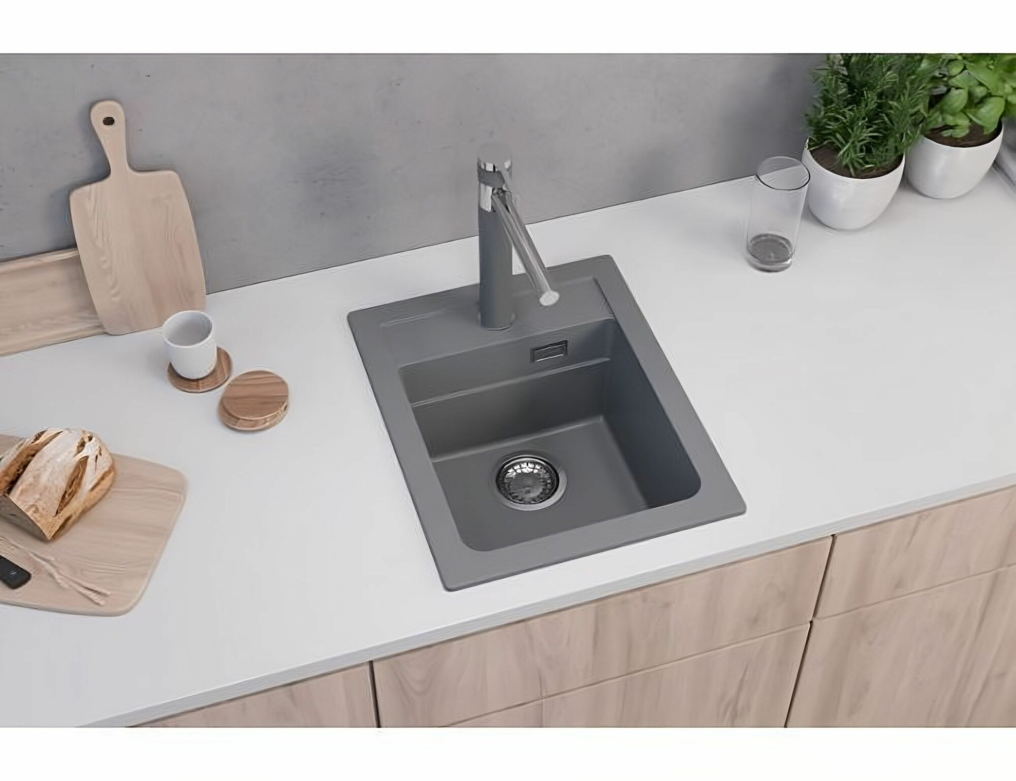 Купить Раковина для кухни врезная каменная Alveus Granital Atrox 10 CONCRETE - G81 400 X 500 / кухонная мойка накладная из искусственного камня, гранит, серый