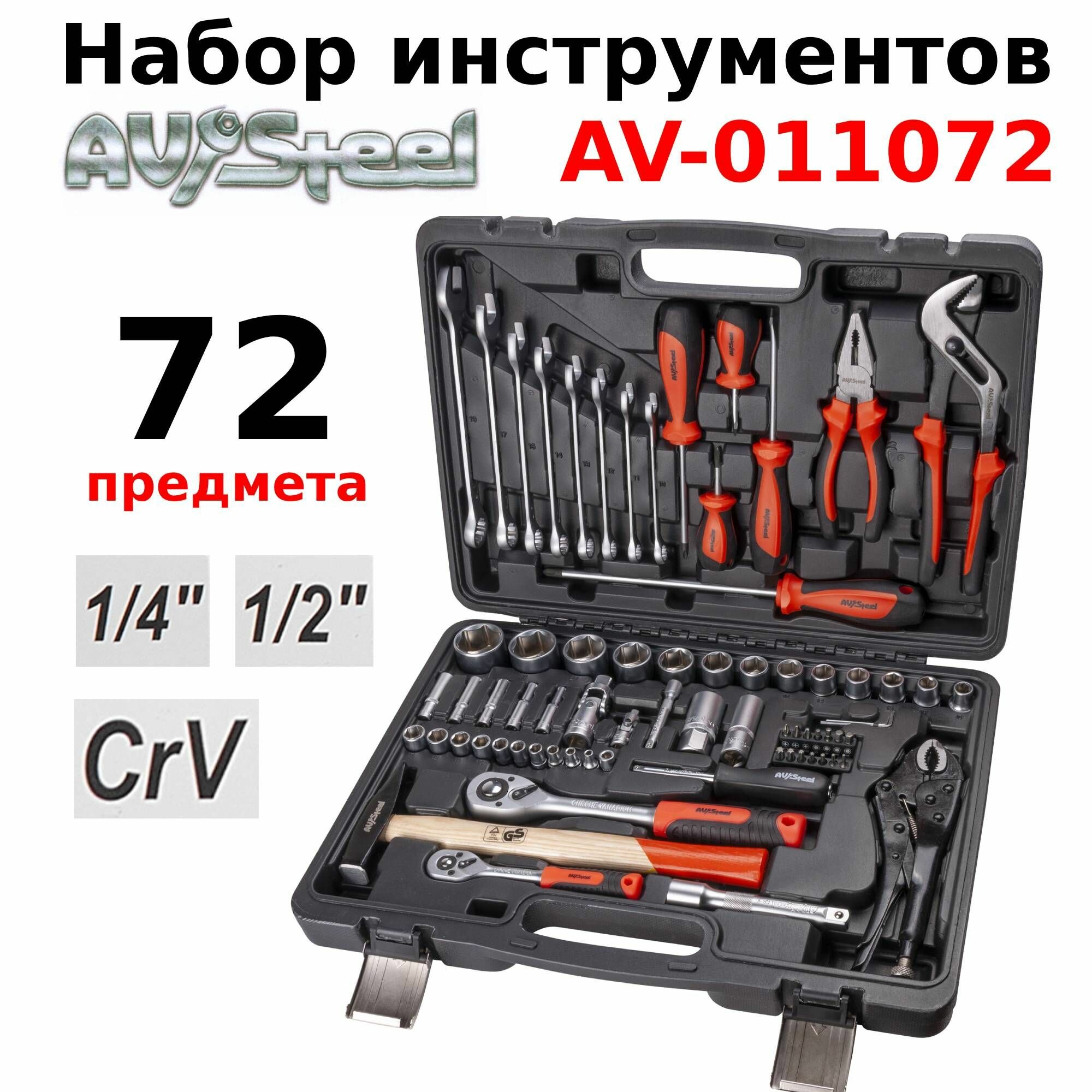 Набор Инструментов (72 Предмета) "Av Steel" 1/2,1/4 (Проф.) AV Steel арт. AV-011072