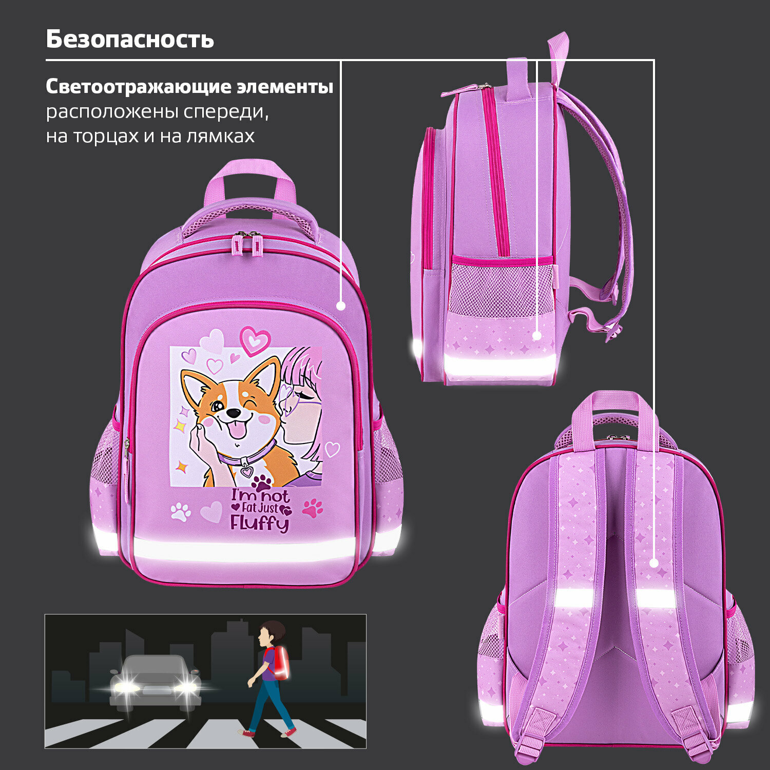 Рюкзак школьный для девочки, ранец для подростка спортивный, портфель детский в школу, 1 отделение, 3 кармана, Пифагор School Fluffy akita, 272084