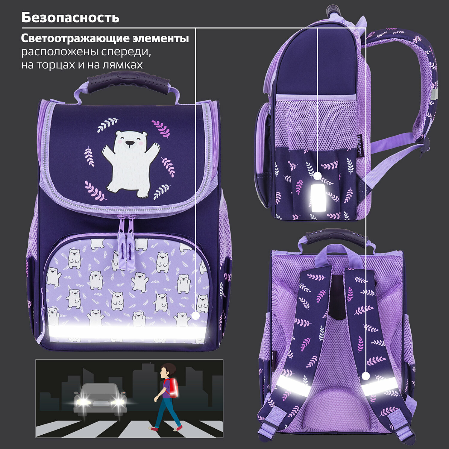 Рюкзак школьный для мальчика, портфель для первоклассника ортопедический, ранец детский в школу с эргономичной спинкой, 1 отделение, 3 кармана, Пифагор Play, 272043