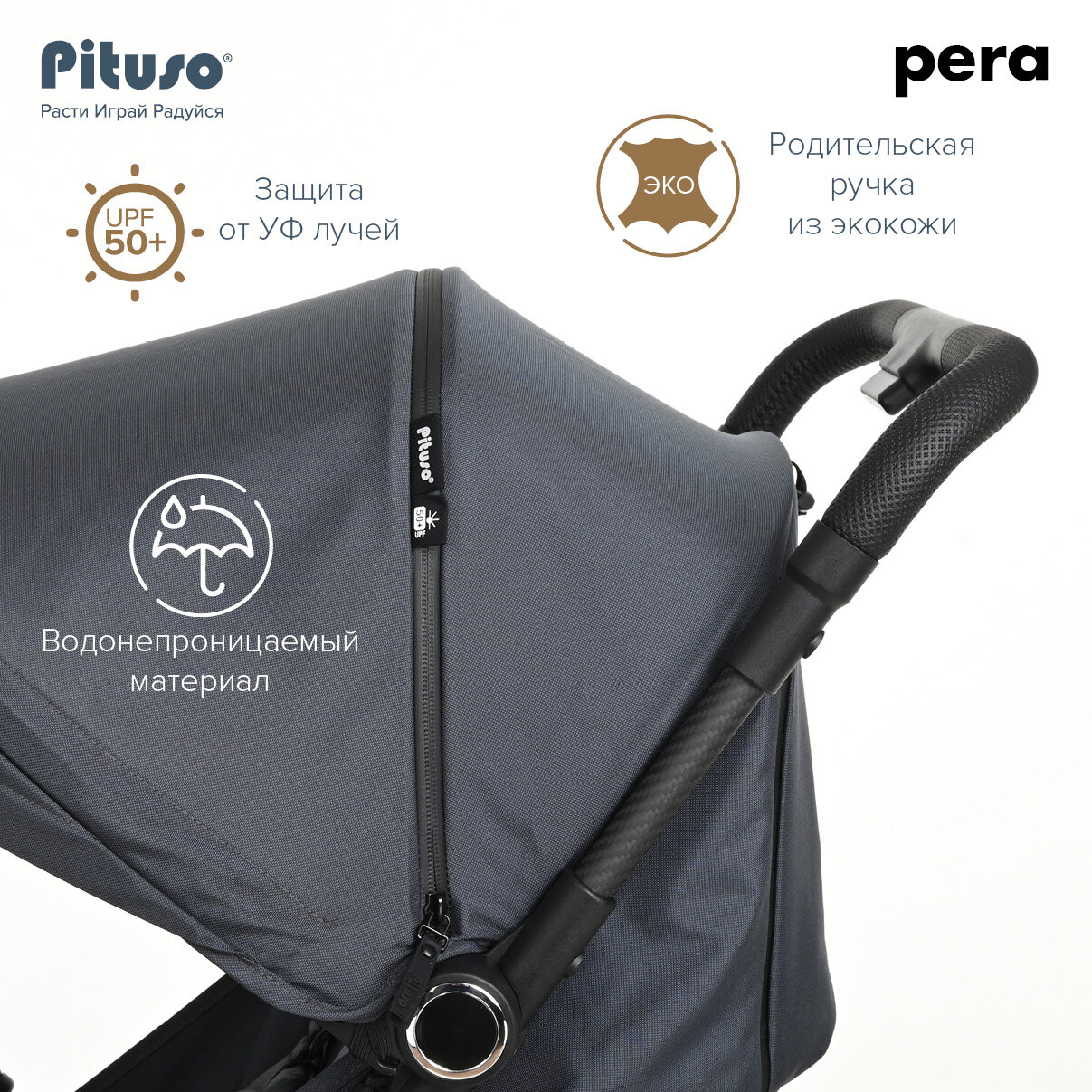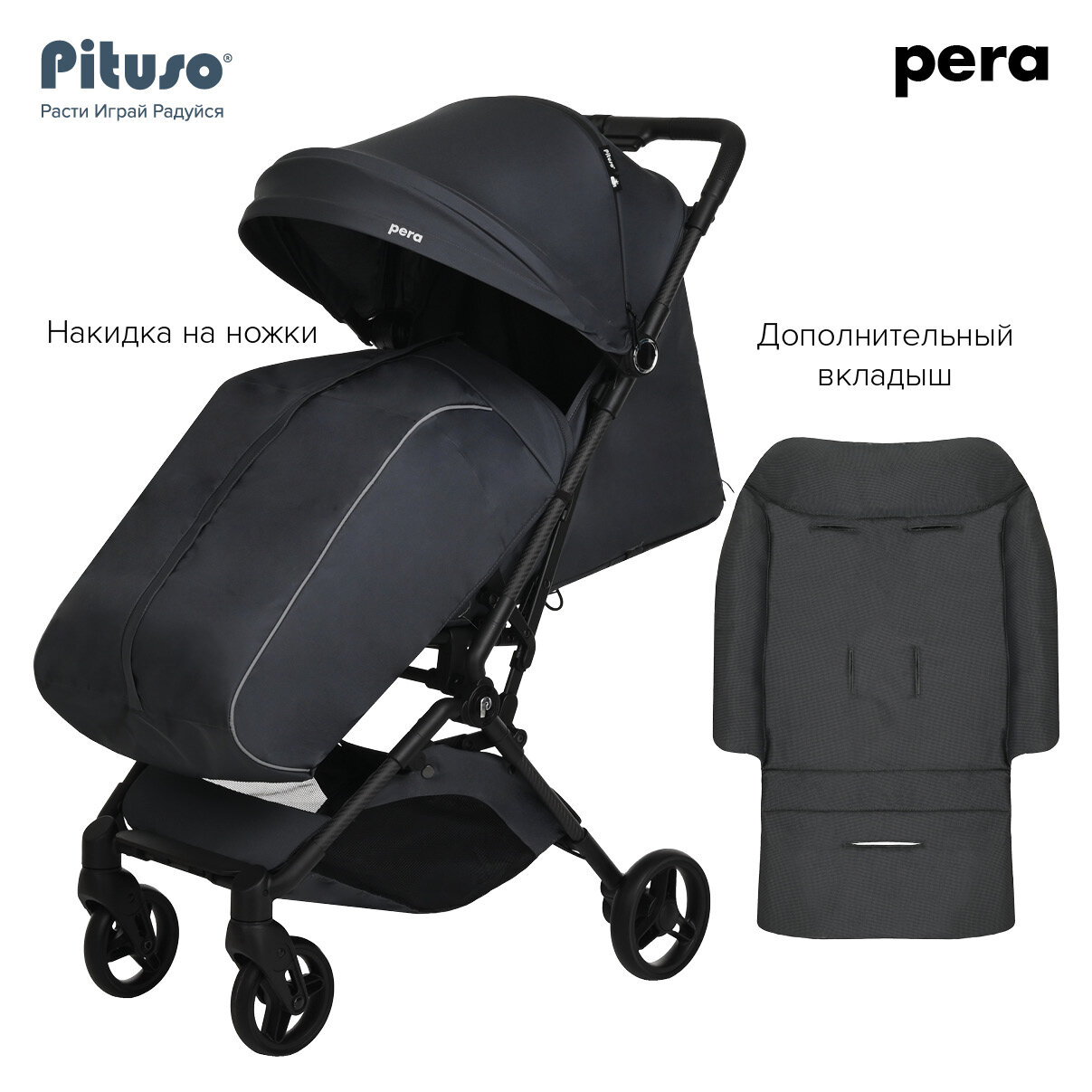 СохранитьКоляска прогулочная Pituso Pera детская всесезонная Graphite/серый интересное: