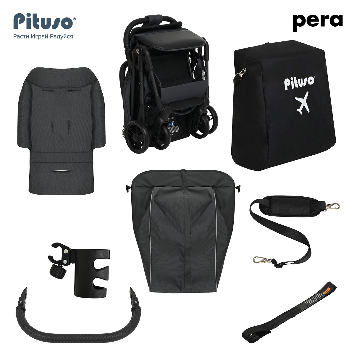 Купить Коляска прогулочная Pituso Pera детская всесезонная Graphite/серый