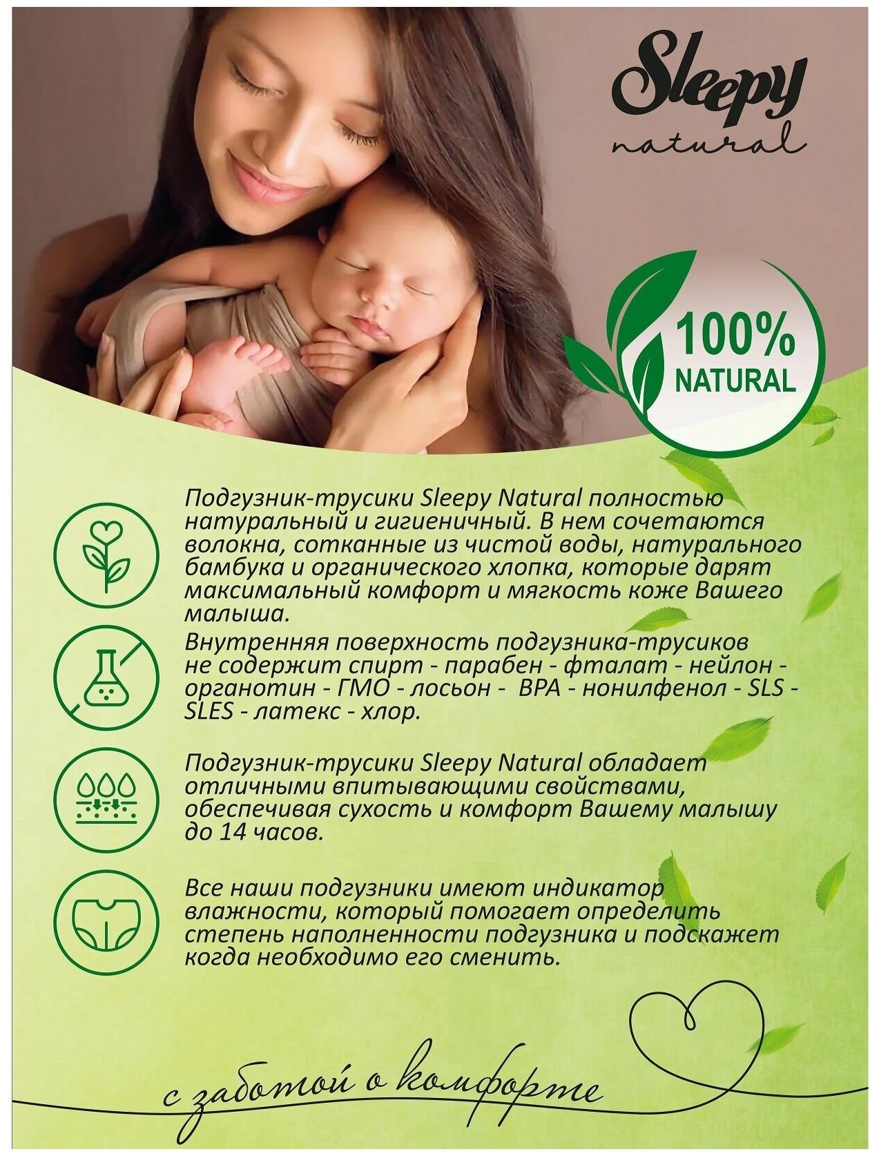 СохранитьЭКО Подгузники детские Sleepy Natural размер 5 (11-18 кг), 48 шт интересное: