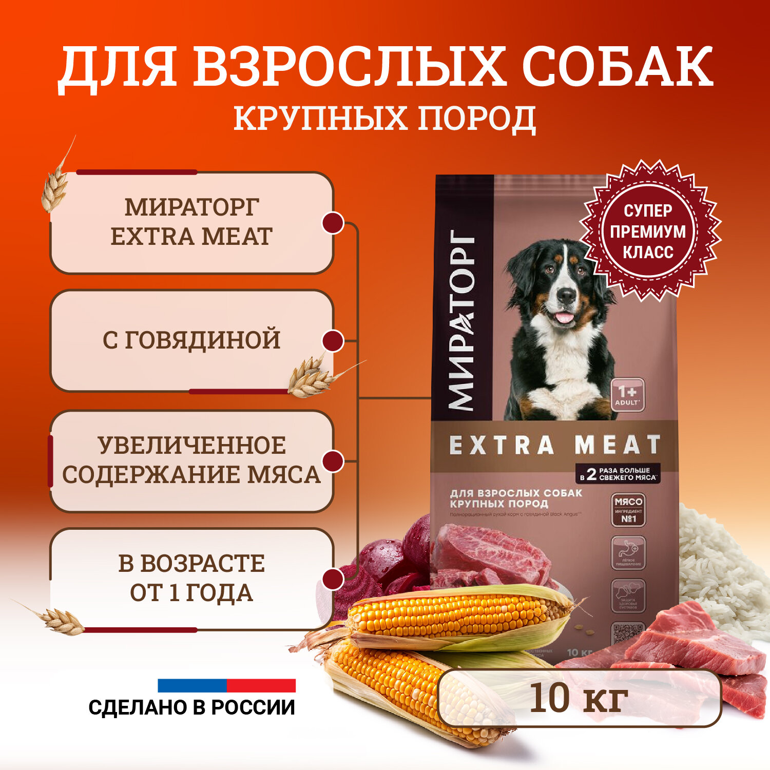 Сухой корм Мираторг Extra Meat для собак крупных пород, с говядиной, 10кг