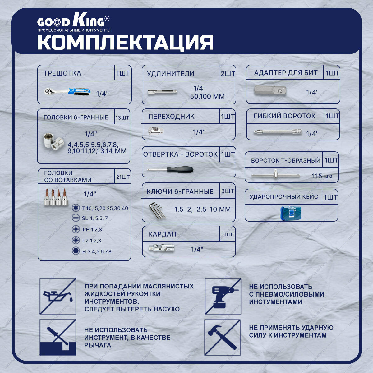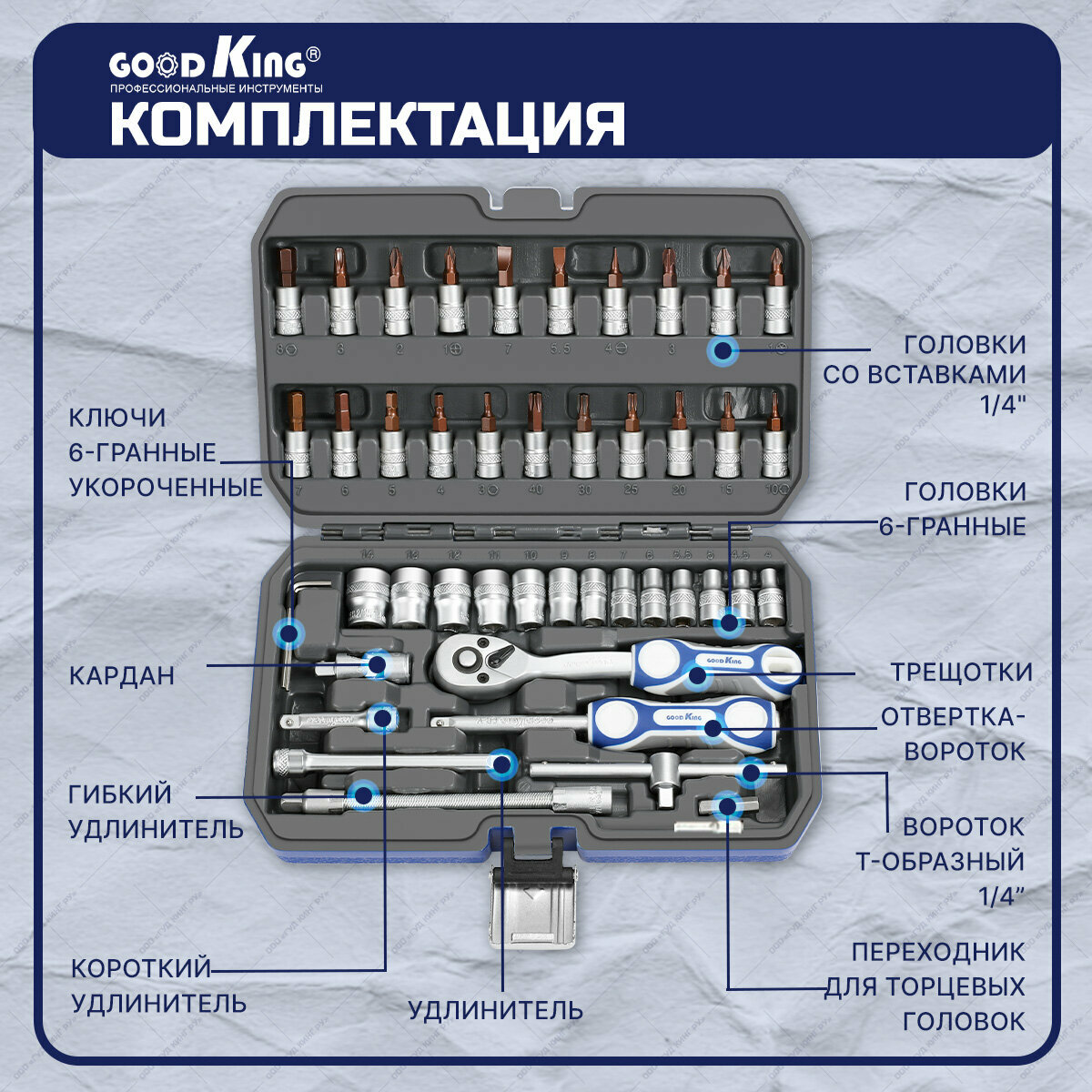 Набор инструментов GOODKING 53 предмета 1/4" трещотка B-10053