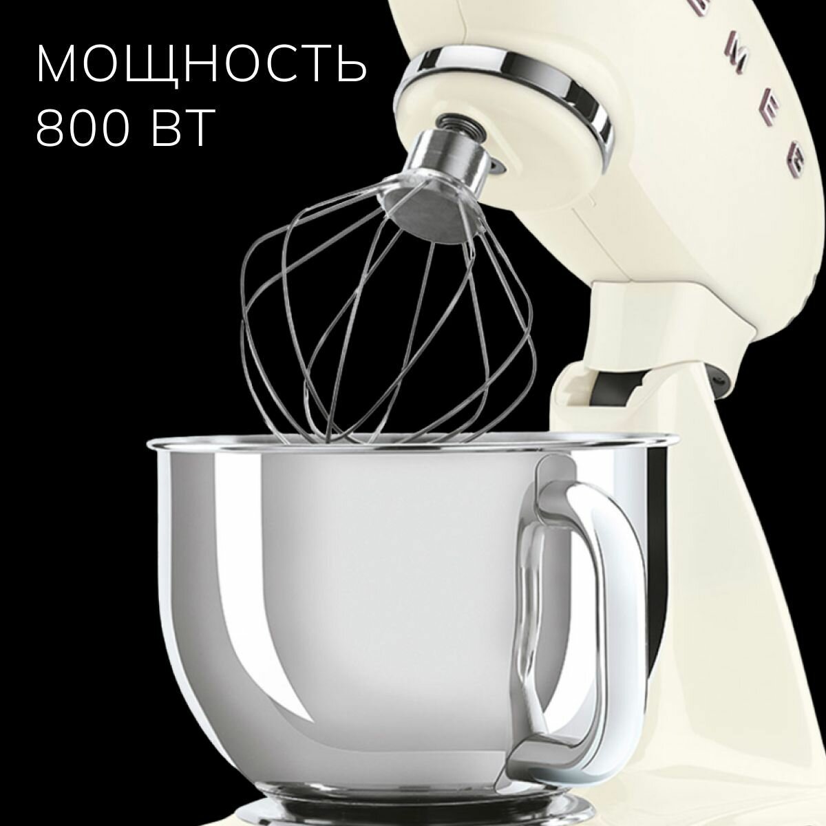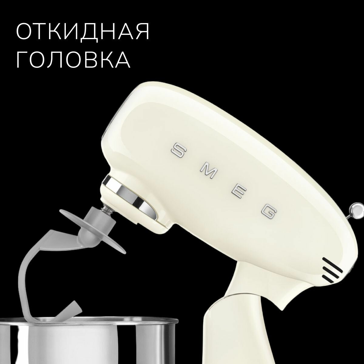 Планетарный миксер, мощность 0,8 кВт, объем чаши 4,8 л, Кремовый Smeg SMF03CREU