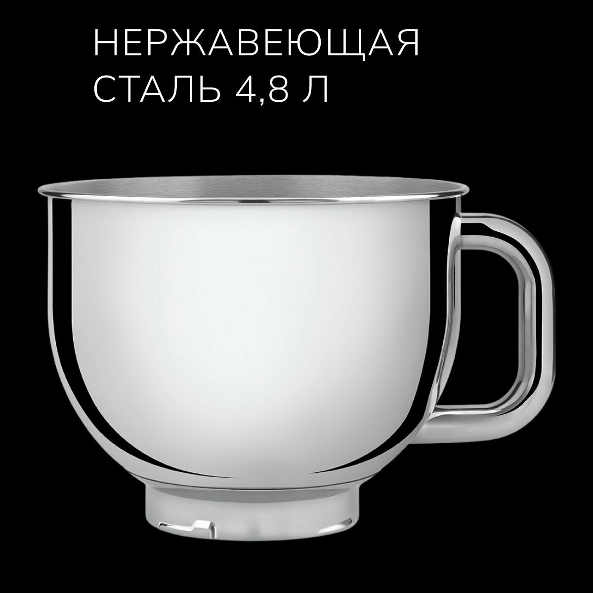 Миксеры SMEG/ Планетарный миксер, Мощность 0,8 кВт; Объем чаши 4,8л; Регулировка скорости, 2 насадки для взбивания, 1 насадка для теста, крышка для чаши, черный
