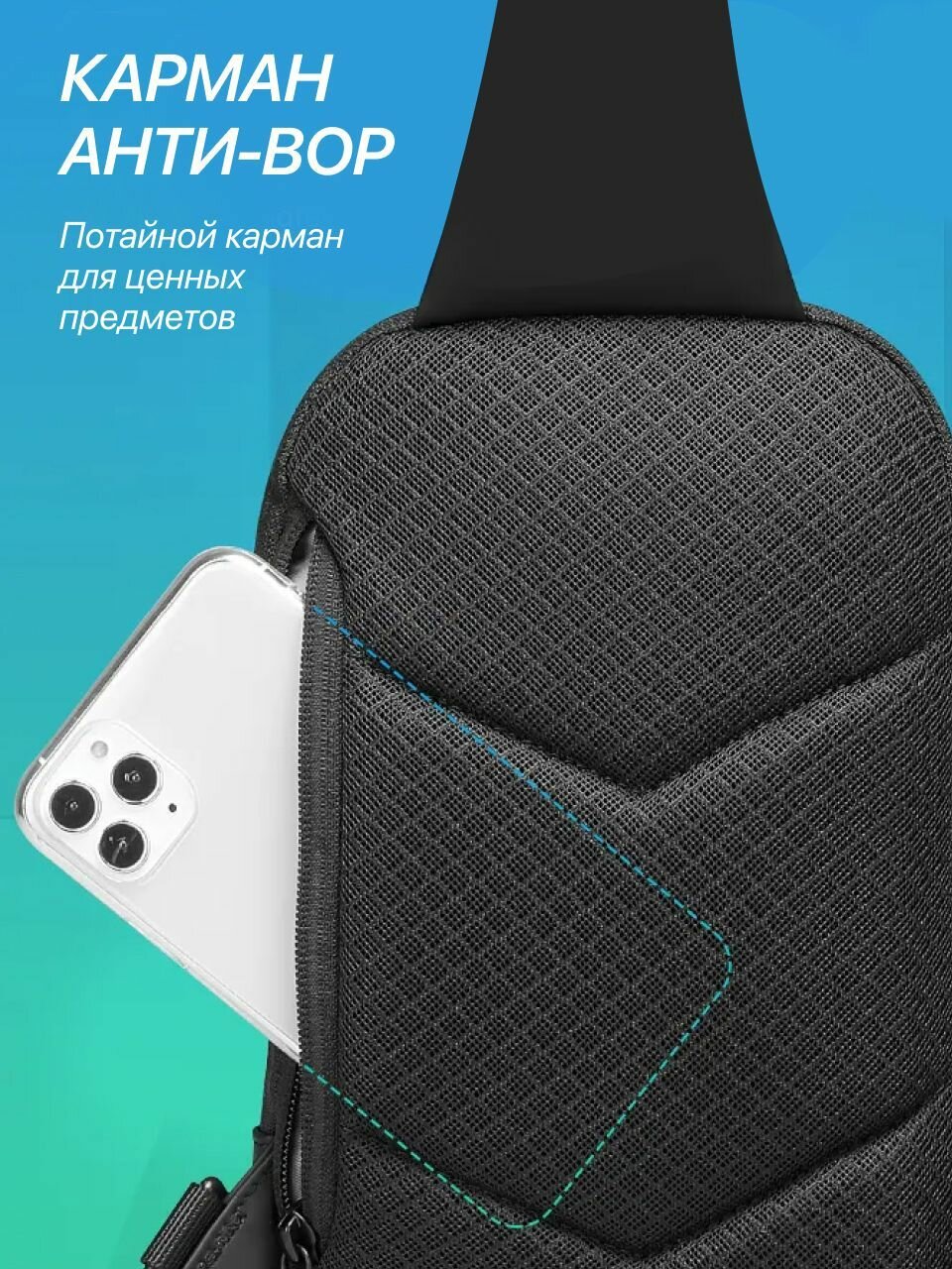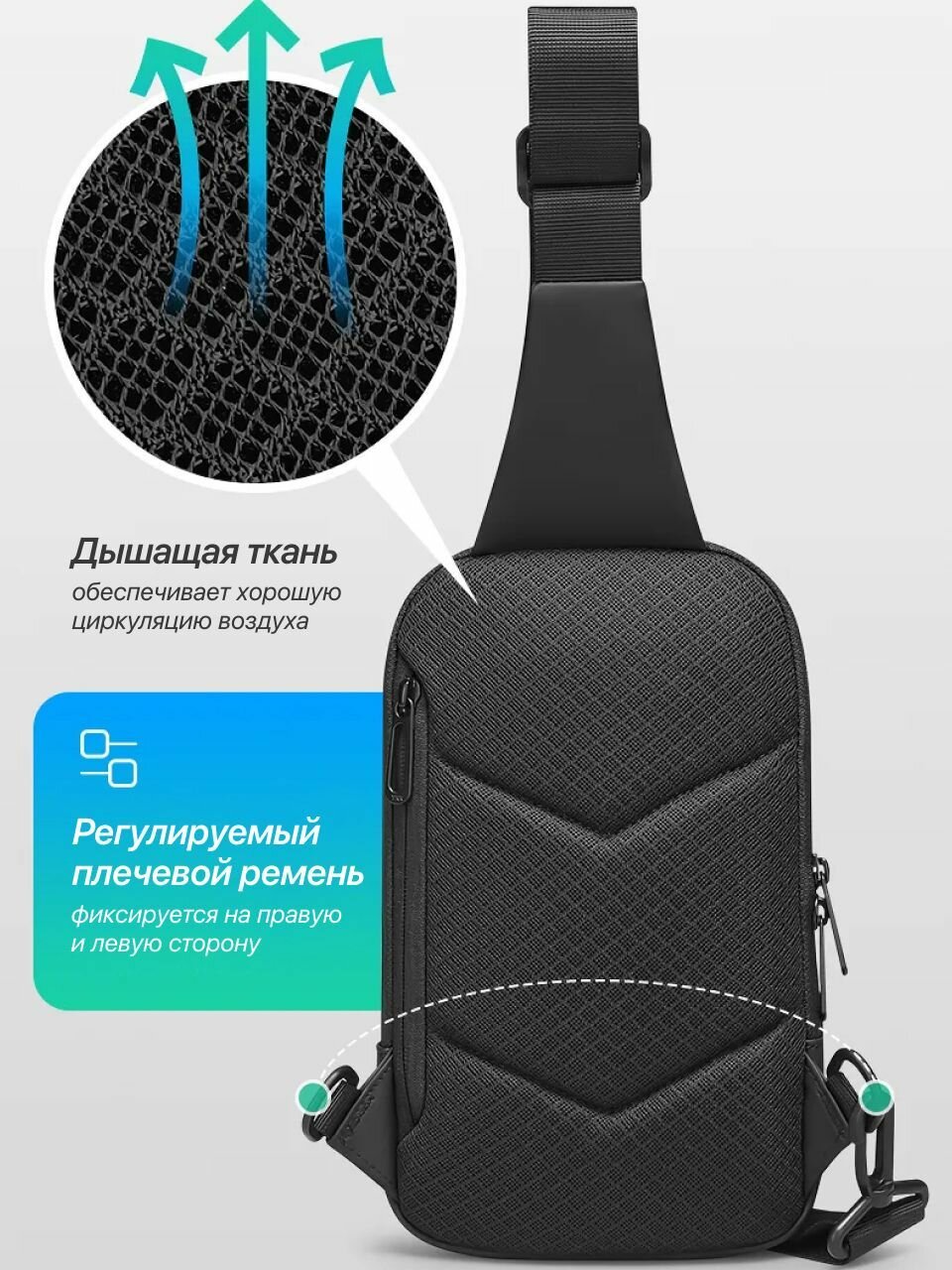 СохранитьСумка через плечо мужская Mark Ryden. Барсетка нагрудная кросс-боди для документов, маленькая дорожная сумка на грудь черная интересное: