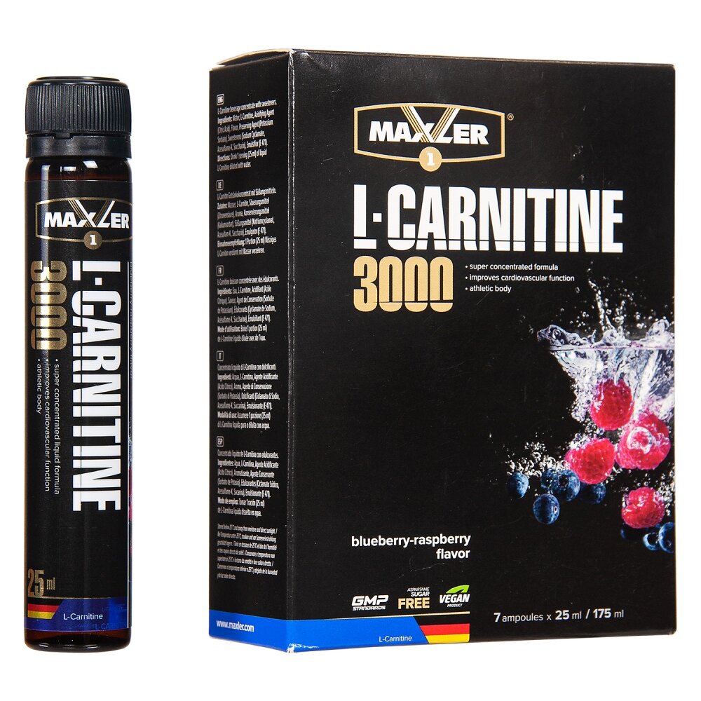 Карнитин Maxler L-Carnitine 3000 со вкусом черника-малина, 7х25мл, Концентрированная жидкая формула, 3000 мг в порции