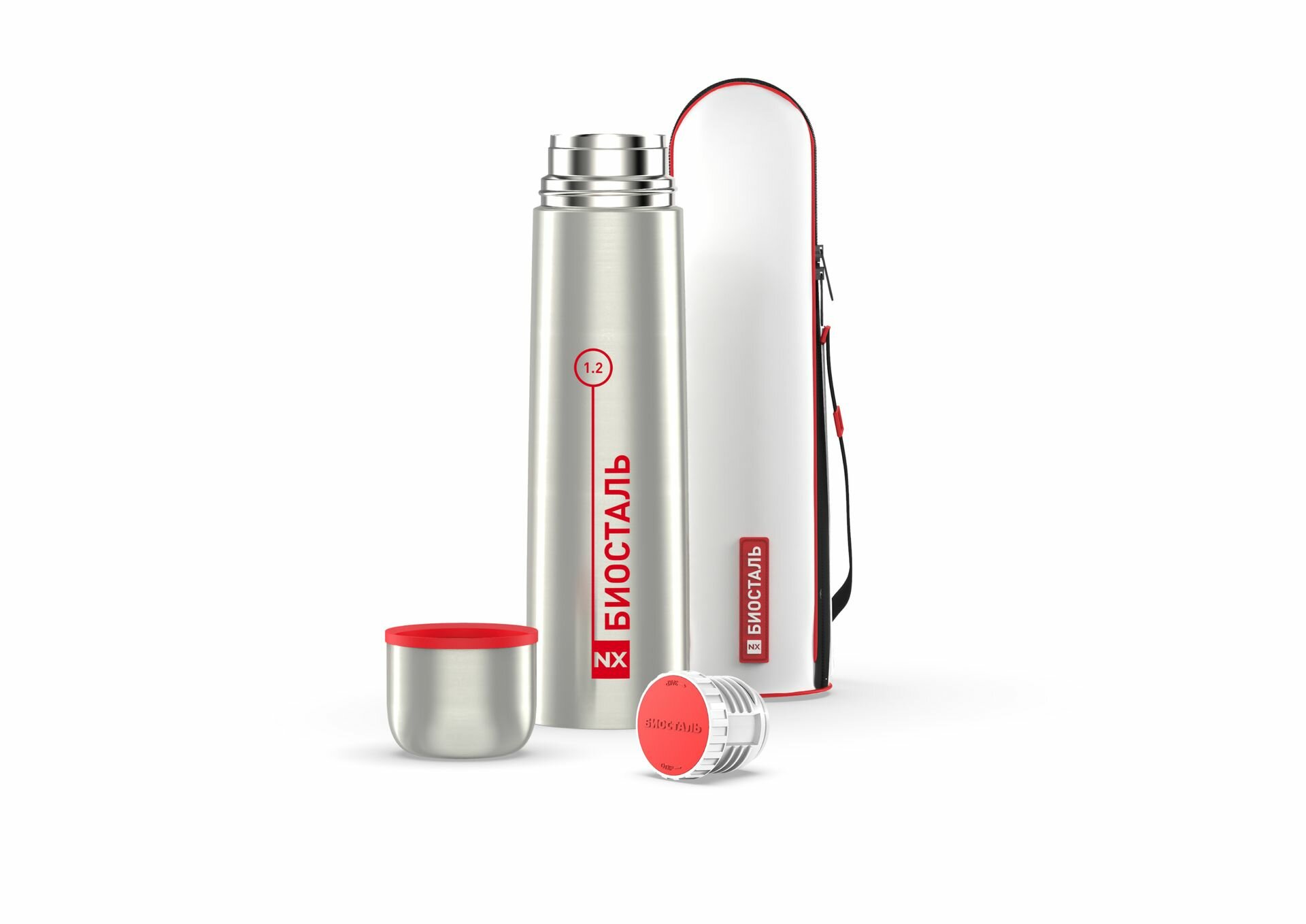 Термос биосталь NX-1000B 1л, серебристый/красный